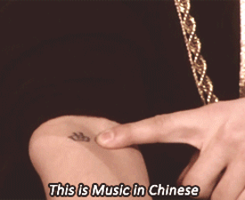 有些名人的确还是没走歪,比方说贾斯汀·比伯手臂上的那个“曲”字,他解释说 “This is music in Chinese”.