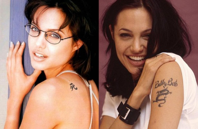 Actress Angelina Jolie has a bit of a dark Chinese character meaning 'death'. You read that right! Death! She also rocks the Chinese dragon tattoo on her left arm.