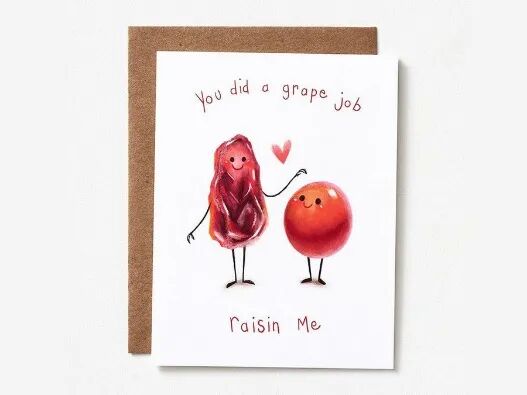 You did a grape (葡萄) job raisin (葡萄干) me.