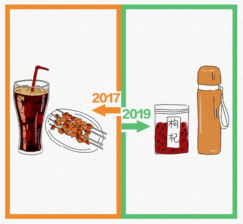 就餐时喝热饮对中国人来说不是稀罕事,热奶茶不说,广东人吃早茶不也得佐热茶吗。这种饮料里的年岁增长应该体现在保温杯里泡枸杞(goji)。