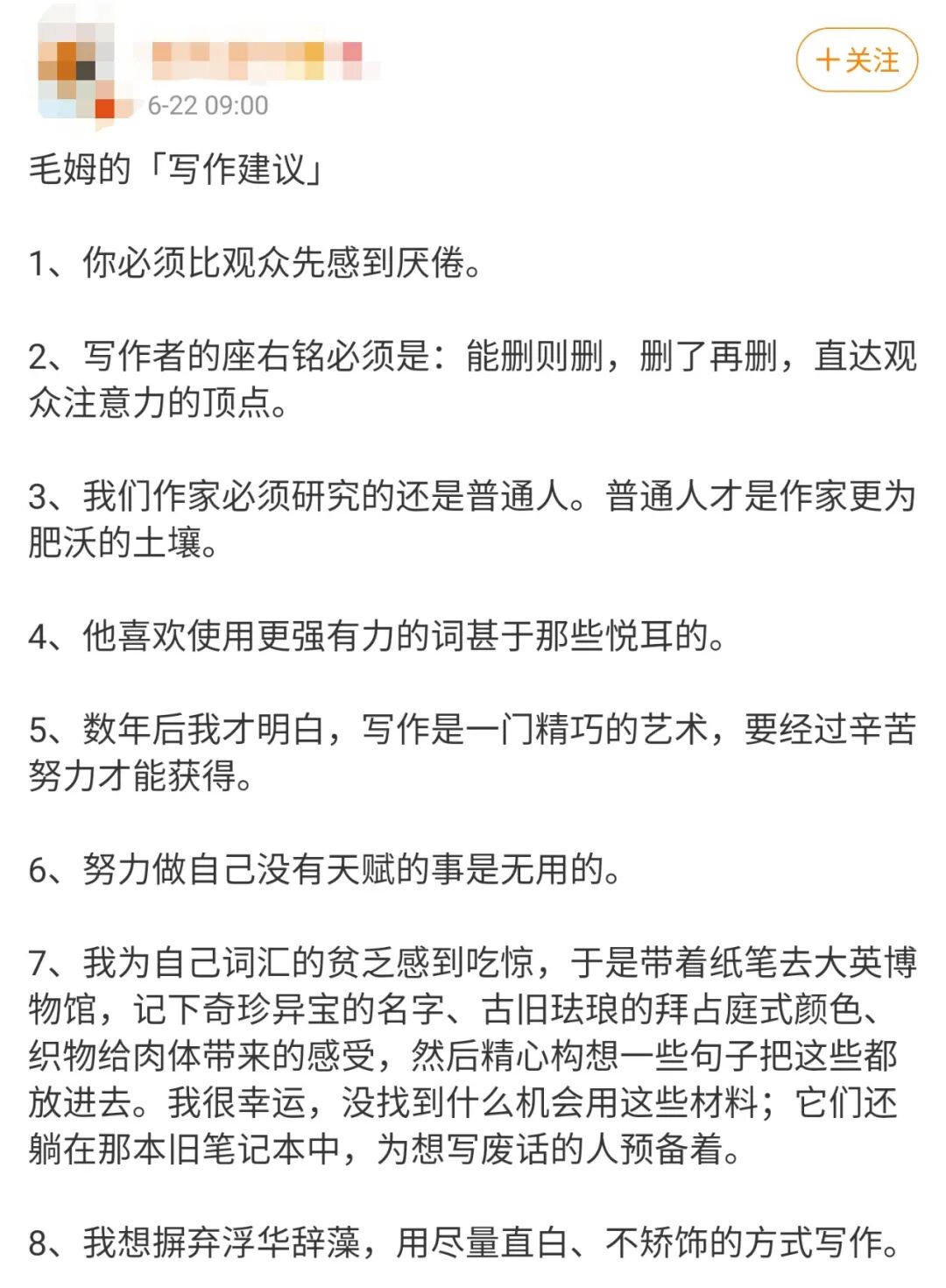 近来,若干据称是英国著名文学家毛姆的“写作建议”在网上流传开来。有些这样说道: