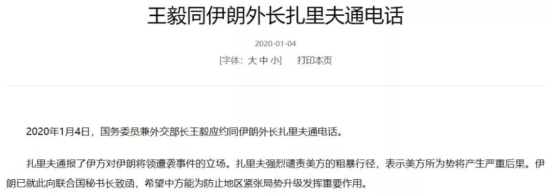 关注!王毅应约同伊朗外长通电话,表明中方立场