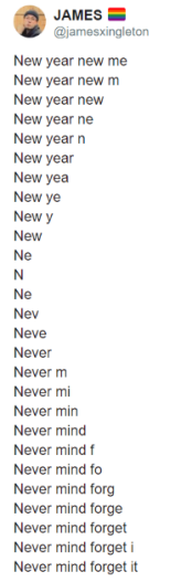 ◆ New Year’s resolution is to stop typing "lol" after every sentence lol.