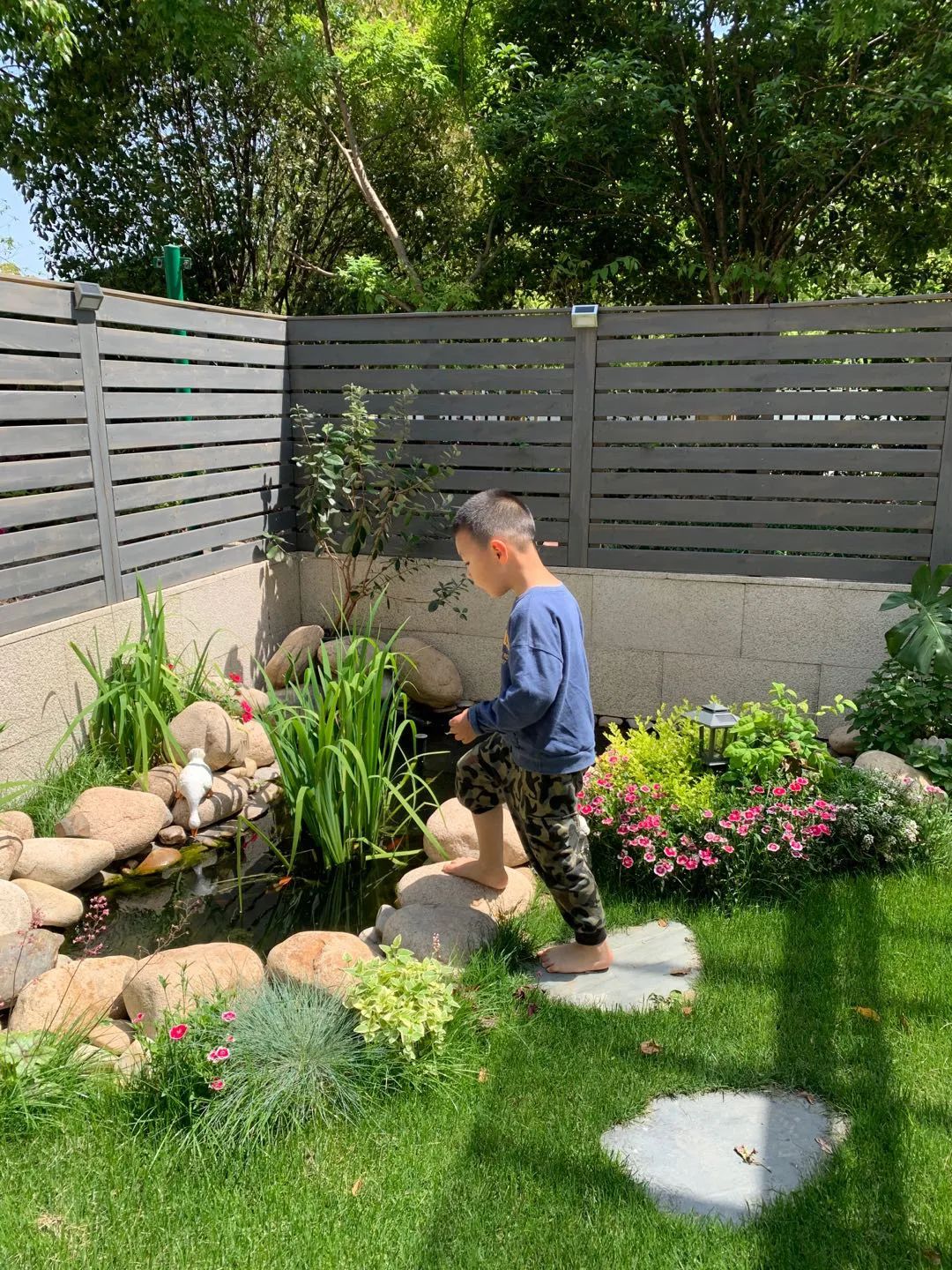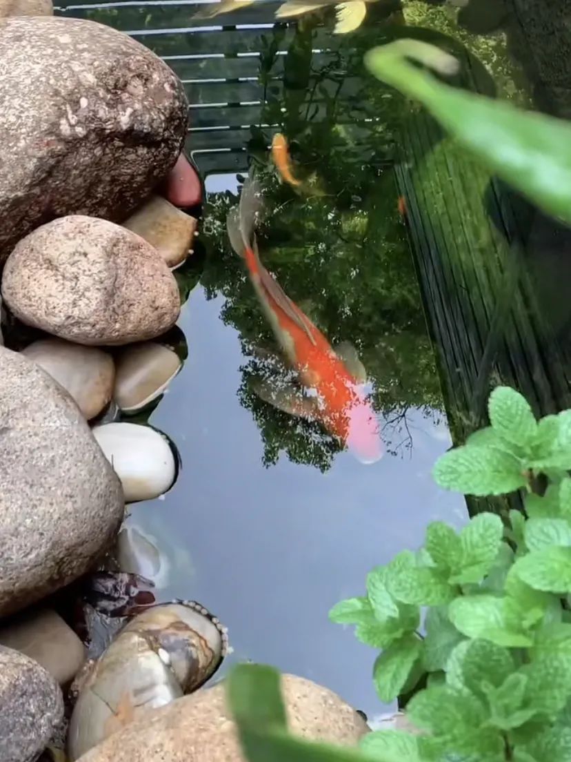 我的鱼池大概四平米左右,鱼池底部的混凝土钢筋是浇筑的,防止沉降,然后先用红砖砌筑结构,然后抹水泥,在内墙和底部周围抹专业防水材料,并在底部铺上一些散落的鹅卵石,记得预留户外插座、进水口和溢水孔。