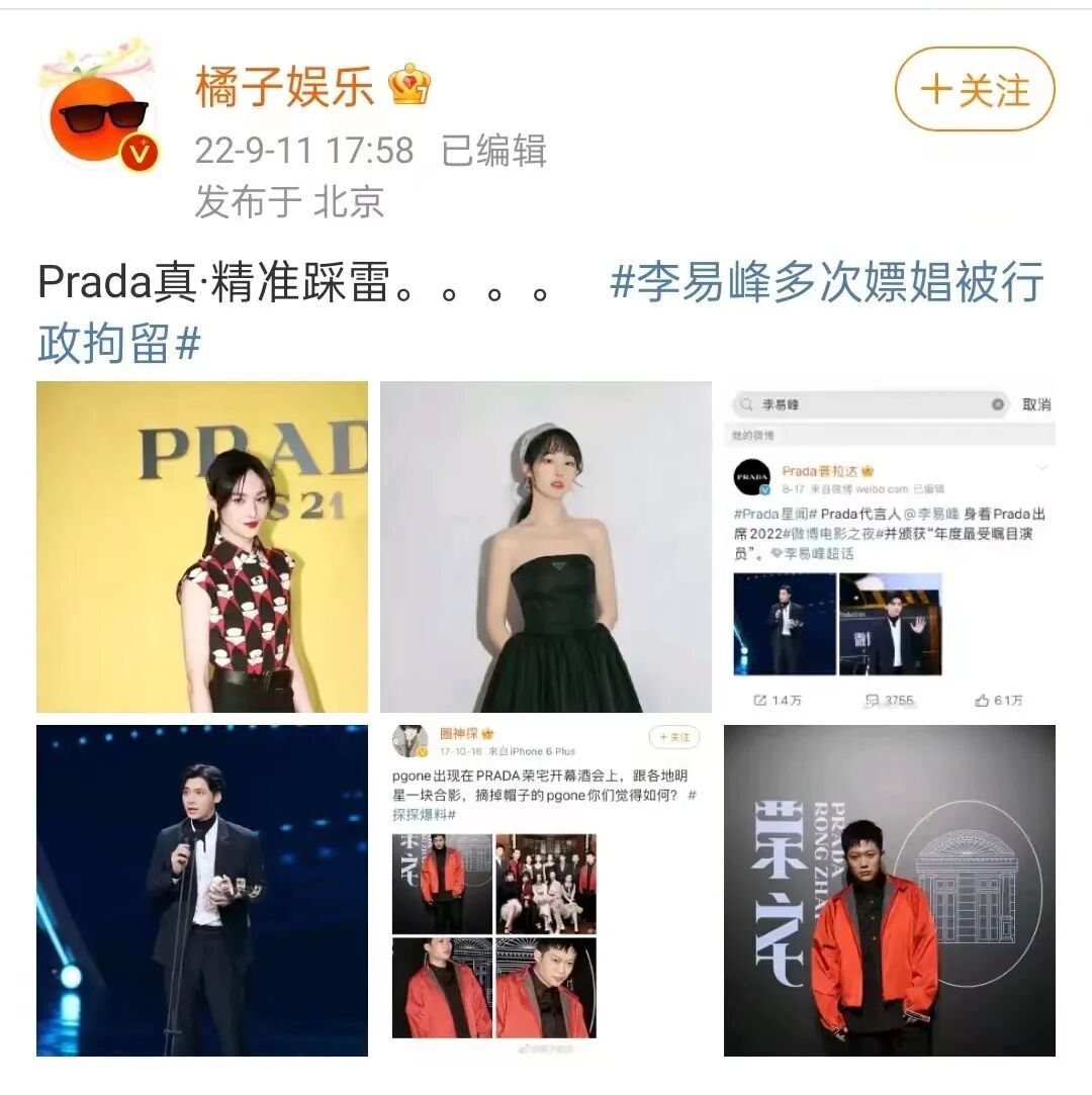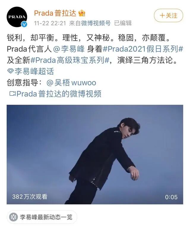 而高奢品牌PRADA去年11月才官宣李易峰为代言人,如今不到一年便匆匆解约。