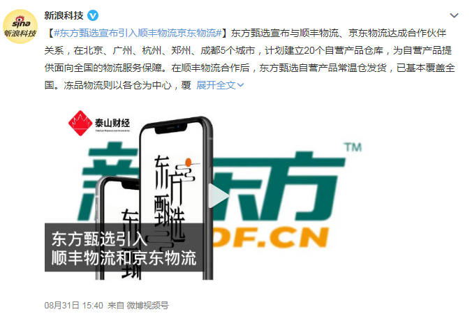为此,东方甄选还和顺丰、京东坐上了同一条船。于近日官宣与顺丰物流、京东物流达成合作伙伴关系,在北京、广州、杭州、郑州、成都5个城市,计划建立20个自营产品仓库,为自营产品提供面向全国的物流服务保障。