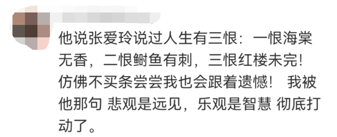 在董宇辉的直播中,他借用张爱玲的表达,说人生有三恨:海棠无香,鲥鱼有刺,红楼未完。