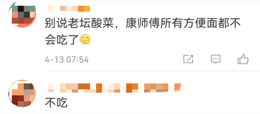 有网友直接说,别说是老坛酸菜了,康师傅的所有方便面都不会吃了。
