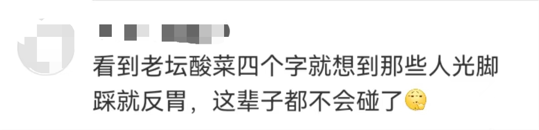 有网友表示,提到“老坛酸菜”这四个字,想到那些人光着脚踩就反胃。