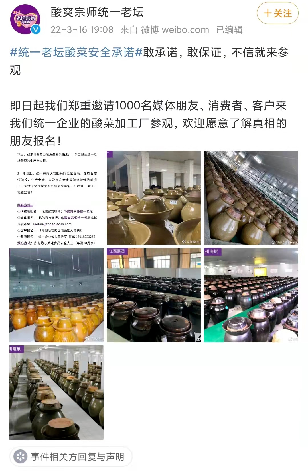统一更是玩起了危机营销,力邀1000名网友去统一酸菜加工厂参观。