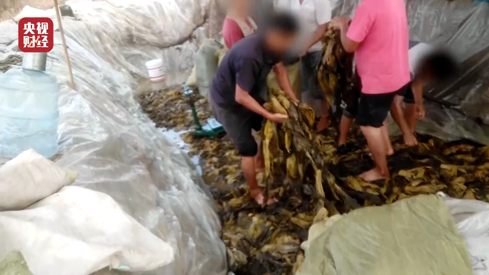 号称“用传统工艺发酵制成”的老坛酸菜,实则是在田地里挖坑直接腌制。工作人员穿着拖鞋或光脚踩在酸菜上,甚至随意乱丢烟头……