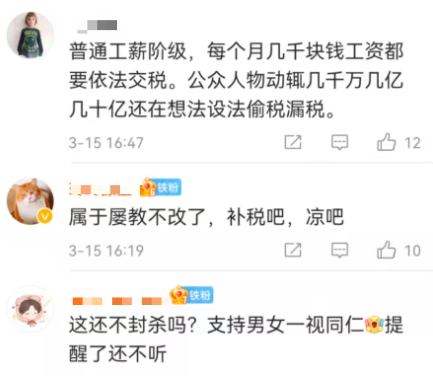 有网友总结,明星翻车无外乎两个原因:不是睡,就是税。