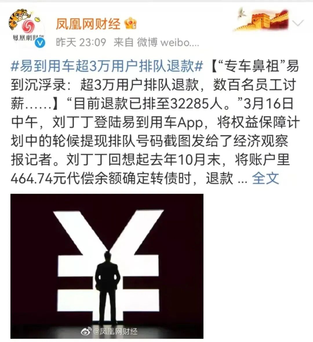 近日,一则#易到用车超3万用户排队退款#的新闻在网络上发酵。