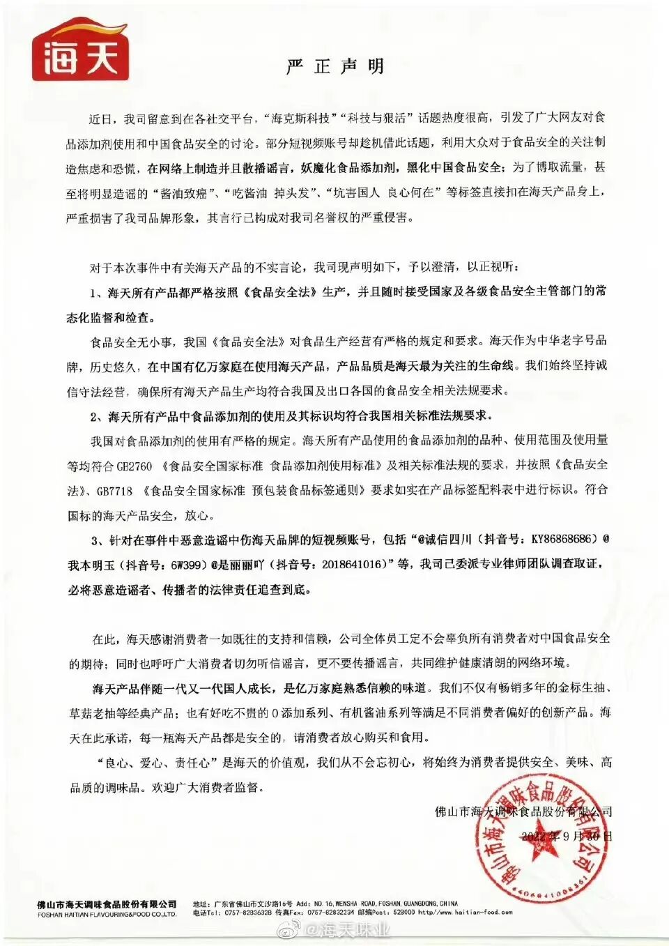 ●图源:海天味业微博