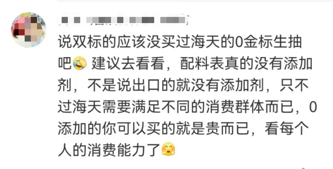 还有网友推荐了海天一款没有添加剂的产品,认为品牌需要满足不同的消费群体。