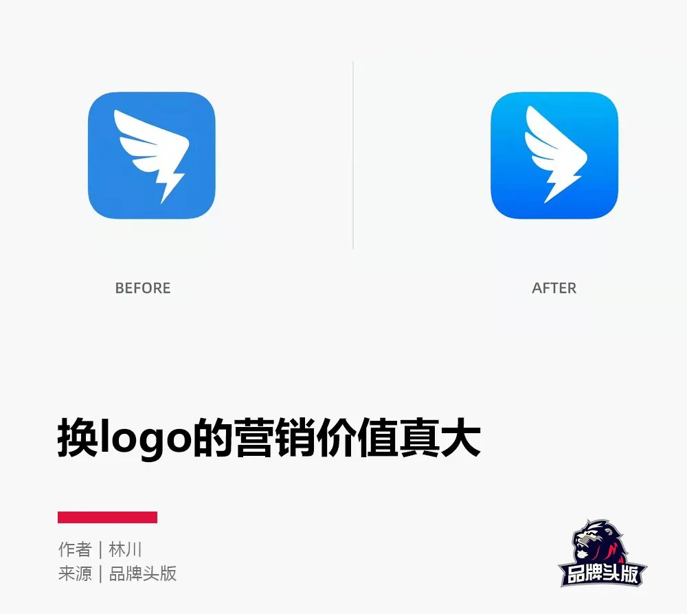 新Logo保留了原有的“翅膀”轮廓,但整体重心变了。之前的的Logo视觉重心在“闪电”上,新Logo视觉重心则在“翅膀”上。