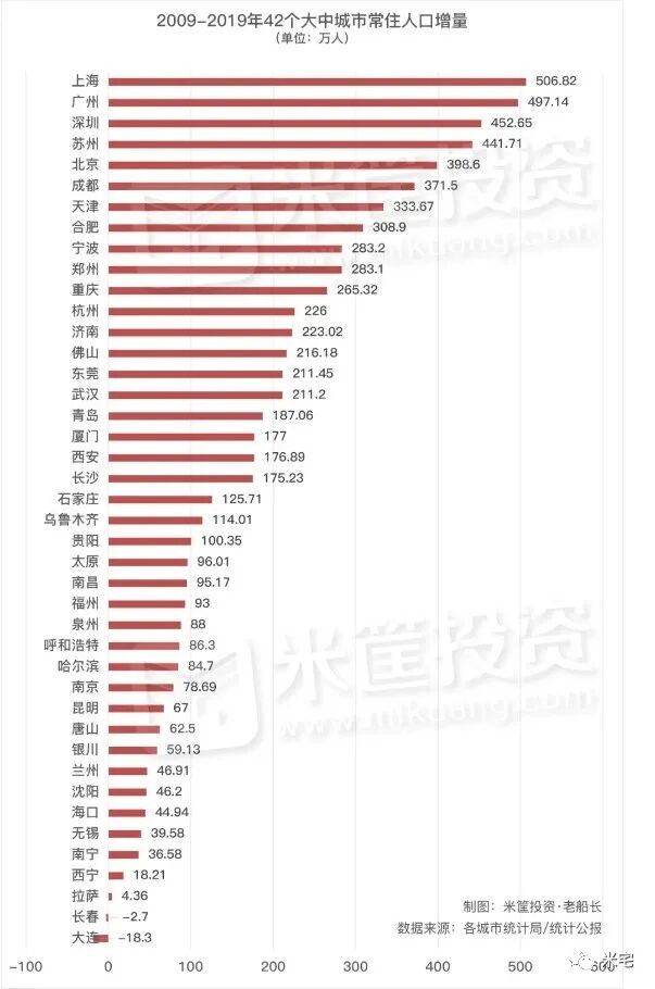 尤其值得一提的是杭州,这几年在互联网经济的助攻之下,2019年杭州人口甚至超过了广深,名列第一。