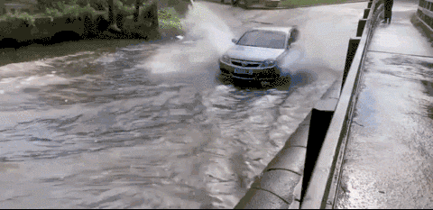 图片中这辆欧宝MOKKA(国内别克昂科拉)底盘比一般的轿车要高吧!而水深也就它的轮胎三分之二,然而驶出积水路面后,这辆车没走多远就熄火了。可能有人会说驾驶员技术不行,车头扎进水里时速度太快了,然而看完下面这张图看,你就明白这并非驾驶技术问题。