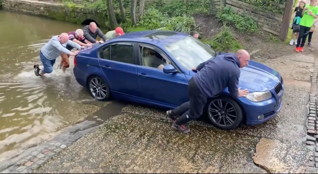 原来是小镇门口有条“网红路”,这条路与一条小河相互交叉,由于河水不深,镇里就没给它建个桥而是直接让来往车辆涉水过河。也因如此,每天都有不少车在这进水抛锚,被村民拍下视频发在网上。