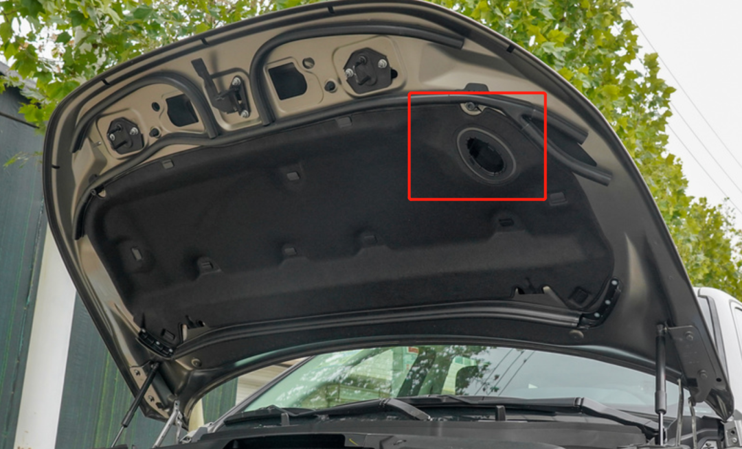 发现运动版的车头扎进水里时,如果水浪短暂盖过机盖,水也不会马上从车头涌入进气管,因为机盖内侧有很多密封胶条,直接把水阻挡在机盖外。