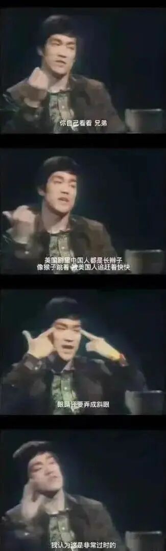文章最后放一张李小龙的访谈截图。西方人的偏见不是最近几年才有的,李小龙当年也说过这件事,他很反对西方对我们的那些偏见,认为我们应该展示出自己正常的样子,Respect!