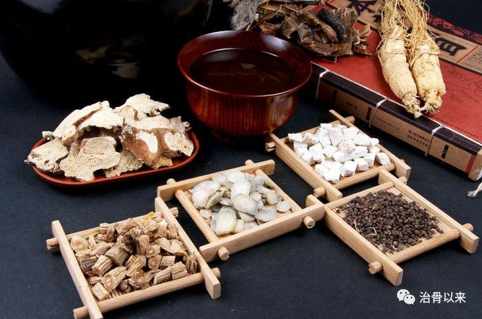 2用量与服法:成人每天用上述制瓷粉五分,和麝香二分,田三七三分,血竭二分调匀,用行气破瘀引经的汤药送服。引经药为:头部骨折用羌活钱,藁本一钱(饭后服);胸肋骨折用川芎三钱,柴胡二钱,北芥子钱半;上肢骨折用桂枝尖钱半,五茄皮三钱(饭后服);腰脊骨折用绵杜仲三钱,破故纸二钱;下肢骨折用牛膝三钱,陈木瓜三钱(空腹服)。行气破瘀药如当归尾、细生地、京赤芍、老土鳖、真血竭、川续断、蓬莪术、京三棱、骨碎补、田三七、红花、桃仁等随证处方,孕妇忌服(当选其他药)。除上述内服药外,在骨折部均外敷师传“接骨止痛散”每7~10天换药一次,以促进骨折的愈合。其处方为:生川乌、生草乌、生附子、生姜黄、桂枝尖、川黄柏、生栀仁、生条芩、川黄连、甘松、荆芥穗各三两,生南星、香白芷、香山奈、北细辛、大土鳖、制然铜、全当归、真血竭、香泽兰、川续断、煅猴骨各五两,田三七一两,大海马四只,以上二十四味药,晒干,共研极细末,以面粉半斤,饴糖一斤,和开水适量调匀。用时,视骨折部位大小摊于棉垫上外敷(注意:外敷方有大毒)。