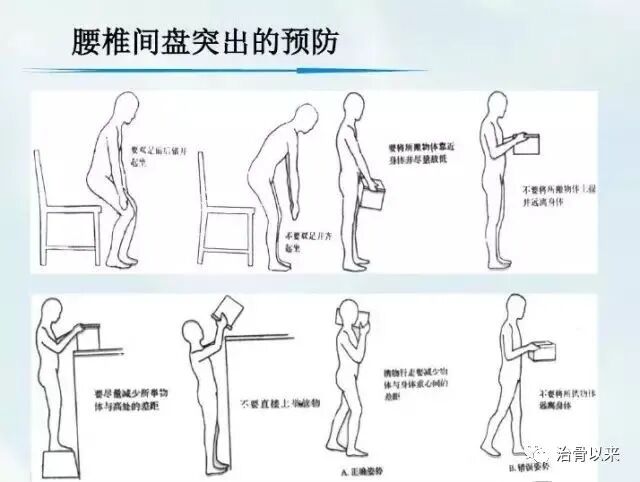 一、生活中尽量避免长时间的坐姿去工作和学习,如果无法避免的话,可以适当进行腰部活动,如广播体操的体转运动。并且一定要注意工作和学习的坐姿,养成良好的习惯。