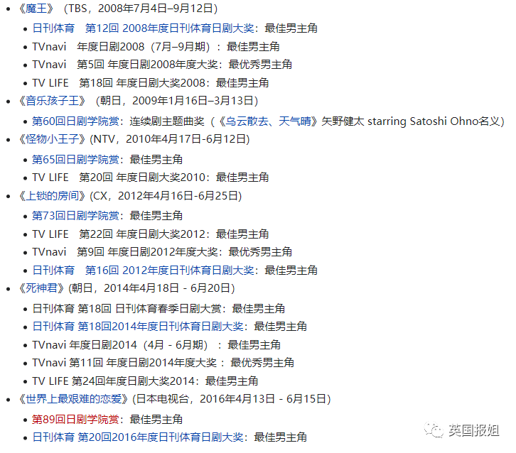 此外,在演戏方面也得到了认同。2008年,他首次主演日剧《魔王》,就斩获了多项大赏的最佳男主角。