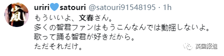 “差不多得了,文春,大多数大野智的粉丝可不会因为这种事动摇哦,我喜欢舞台上边唱边跳的大野智,仅此而已。”