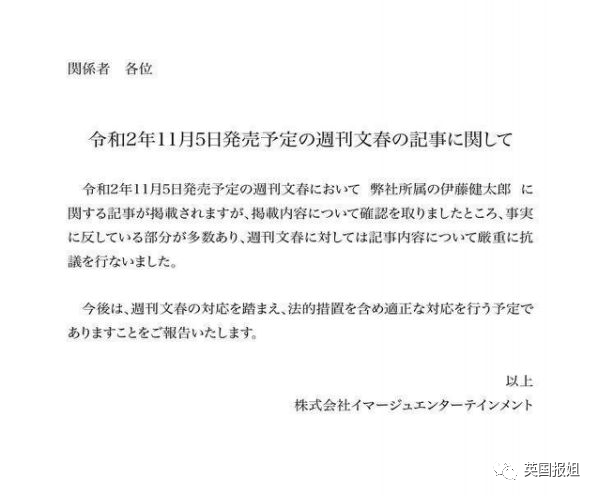 如果伊藤因为《文春》的爆料凉上加凉,因舆论彻底被迫退圈,那事务所估计就要被逼倒闭了。不过这事务所真的很小,《文春》则在日本八卦杂志界风生水起了这么多年,喊着要告他们的人多了,根本没在怕,到现在文春连回应都没有,文也不删。