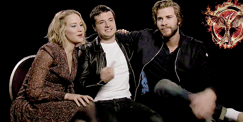 (《饥饿游戏》采访、与《乌云背后的幸福线》男主布拉德利合影)