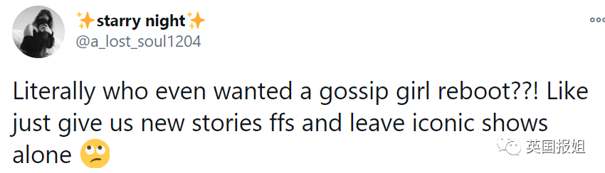 “谁会想要看《绯闻女孩》新版啊?就不能直接给我们拍点新故事看吗?别去搞经典剧了。”