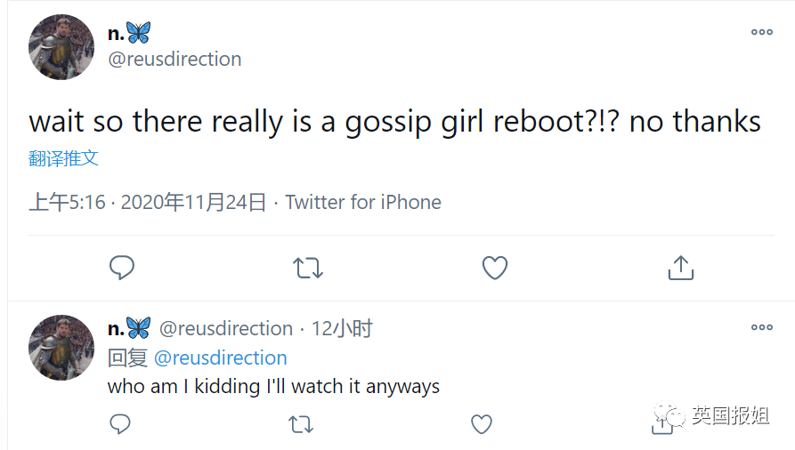 “-等下,所以真的会有一部新版《绯闻女孩》?不了谢谢。