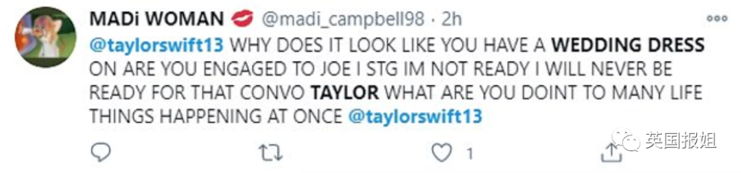 这么看的话......霉霉穿着这身特别像婚纱的裙子出镜,也不是没有可能在暗示些什么?