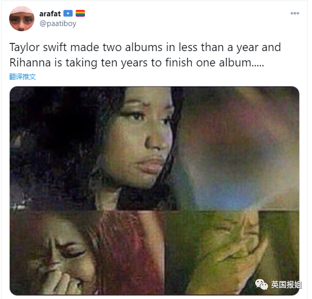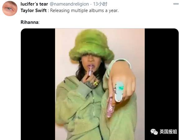 霉霉在一年内完成了2张专辑,而蕾哈娜做一张专辑却花了十年......