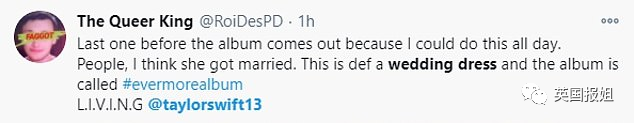 大家,我觉得她结婚了。这绝对是婚纱好吧,然后这张专辑还叫作evermore永远