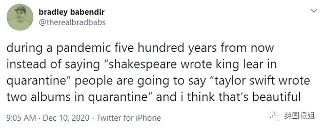 今有泰勒斯威夫特在隔离期做出2张专辑