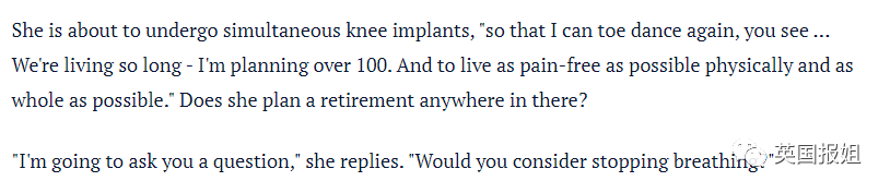 当被人问到是否有考虑退休时,卡门也会反问,“你会考虑停止呼吸吗?”