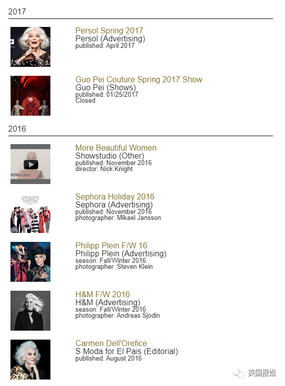与她合作过的都是行业中最负盛名的摄影师,连她老年居民证上的大头照都出自诺曼·帕金森(英国著名摄影师)的手笔。