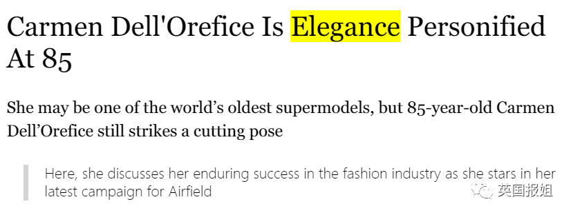 提起Carmen Dell' Orefice卡门·戴尔·奥利菲斯,人们往往对这个名字十分陌生,但当大家看到她的照片时都会脱口而出:原来是她!
