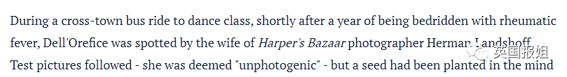 第一次“出道”以失败告终,但这次短暂的试镜还是在一个有抱负的孩子心中留下了种子。随后,卡门的教父将她的照片寄给了一位在VOGUE上班的老朋友。