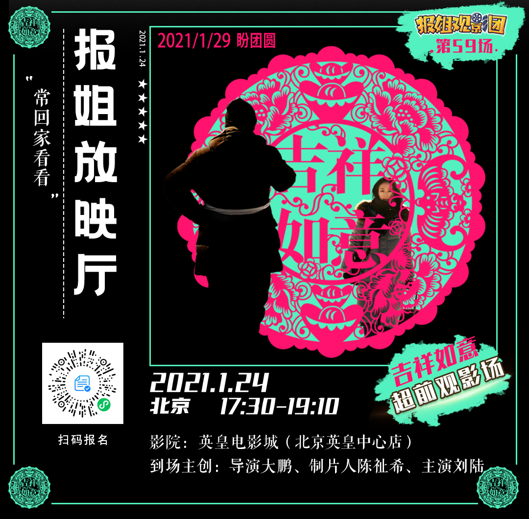 当天导演大鹏、制片人陈祉希、主演刘陆也将会到场进行映后互动,提前跟大家一起过年。马上快到春节了,今年可能还是有很多人没办法回家跟家人团聚,希望借这部影片,愿大家新的一年吉祥如意,盼早日团圆!