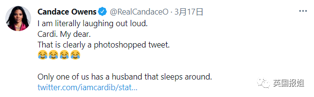 撕X骂战牵扯到家人之后,整个战况就更加激烈了起来,坎迪直接说:笑死,这张推特截图是P过的。
