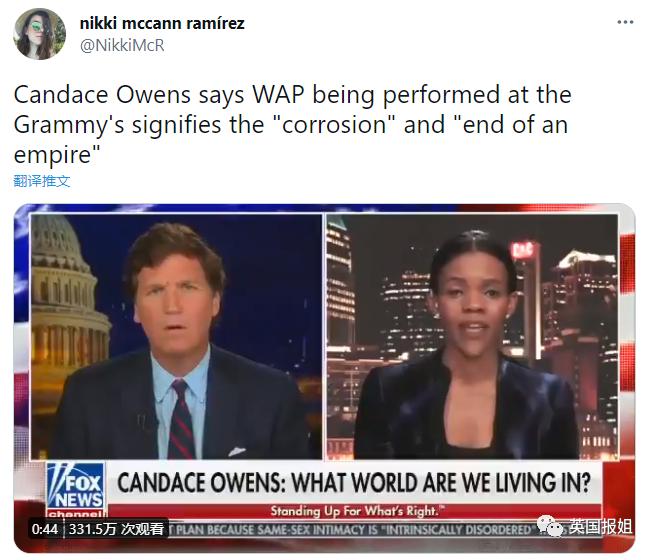 格莱美后的第二天晚上,坎迪就和另一位保守派政治评论员在福克斯新闻上向卡老师“露骨的”WAP表演开炮了。