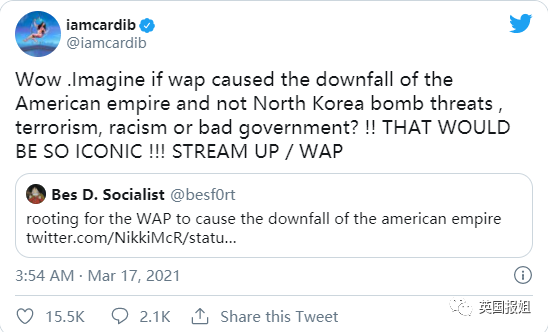 卡老师Cardi B的《WAP》爆红全球之后,这首浦西之歌几乎成了美国的国歌。
