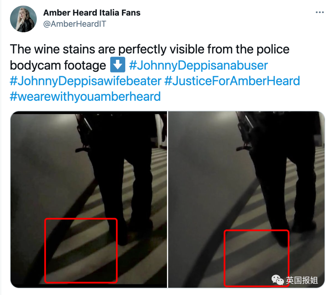 还有支持艾梅柏的网友表示,警方也在睁眼说瞎话。走廊的地毯上,还是就可以看到好几条红酒污渍的。