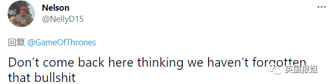 “这不仅仅是一部电视剧!还是一种生活方式,过去的十年里我们一直都在权游的陪伴下活着。谢谢你带来这样的史诗级巨制!”