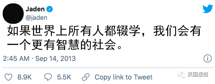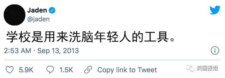 这种自由教育的结果呢,就是杰登曾经的爆炸发言,什么学校无用论,号召大家都辍学等等的言论。