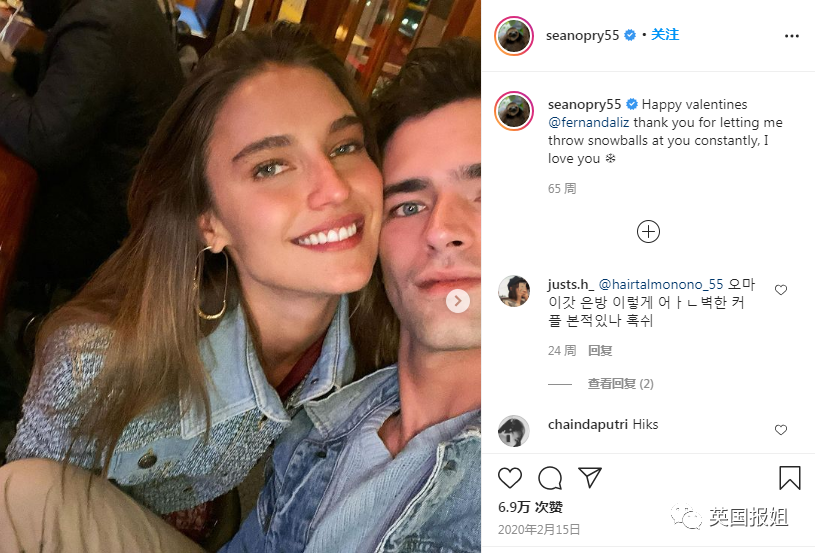 但是他们很快就分开了,肖恩平时也比较低调,之后一直也没有绯闻。直到2020年,他自己在ins上公布了新恋情,新女友是同为模特的Fernanda Liz。