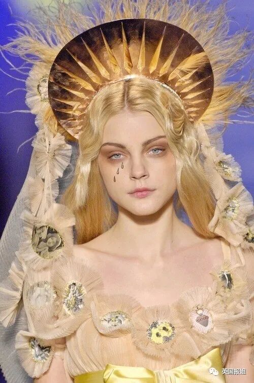 这场灵感来自于天主教的大秀,模特们的造型个个都可以用天仙下凡来形容。